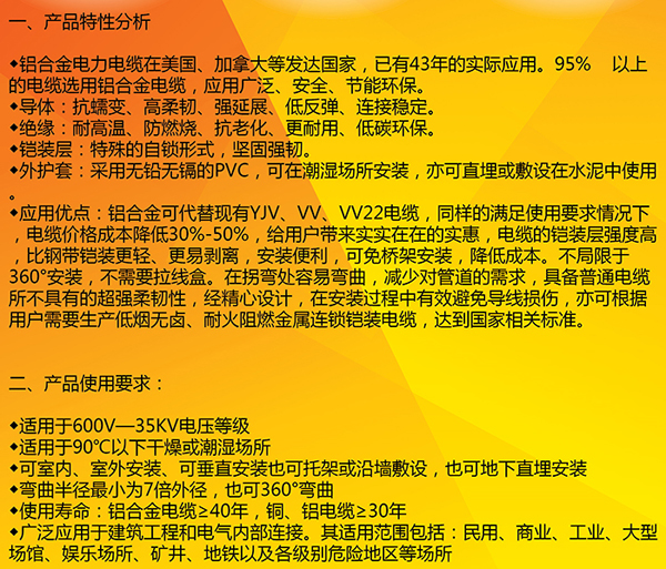 鋁合金電纜:鋁合金電纜ZR-YJLHV 瀏覽:3672